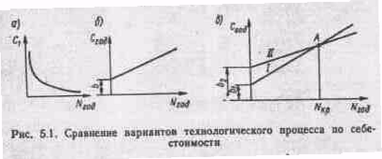 Из уравнения (5.5) следует, что при прочих, равных условиях себестоимость зависит от количества изготовляемых деталей.