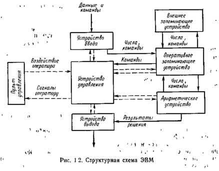 Структура ЭВМ. Несмотря на различие в конструкции, ЭВМ состоят из пяти основных устройств (рис. 1.2).