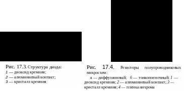 Полупроводниковые резисторы получают методом диффузии (рис. 17.4, а). Они имеют малые размеры с номинальными значениями от 25 Ом до 25 кОм.