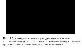 Конденсаторы полупроводниковых микросхем. Они имеют следующие разновидности (рис. 17.5): диффузионные, металл-оксидно-полупроводниковые (МОП-конденсаторы) и тонкопленочные.