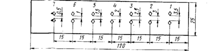 Штампуемость материала определяется его способностью подвергаться обработке без образования сколов по граням отверстий и трещин в перемычках между отверстиями. Для проведения испытании на штампуемость из листа фольгированного материала вырезают образцы в двух взаимно перпендикулярных направлениях. В каждом из них пробивают по 7 пар квадратных или ромбических отверстии (рис. 12.5) с постепенно уменьшающимися расстояниями между ними. Высшей оценкой штампуемости является степень 7 соответствующая расстоянию между отверстиями 0,5 мм, а низшей - степень 1 соответствующая расстоянию 3,5 мм.