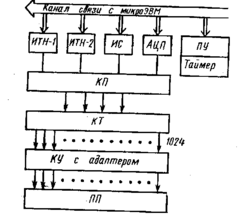 Структурная схема установки для автоматизированного контроля печатных плат приведена на рис. 12.24. Установка фиксирует обрыв цепи и короткие замыкания проводников, обеспечивает подключение 1024 контрольных точек [7].
