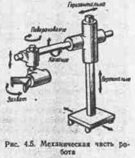 Исполнительные устройства. Они выполняют все двигательные функции ПР. В общем случае это манипулятор и устройство передвижения. Манипулятор — управляемые устройство или машина для выполнения двигательных функций, аналогичных функциям руки человека при перемещении объектов в пространстве. Манипулятор оснащен рабочим органом.