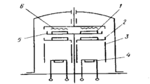 1 - нагреватель: 2 - держатель подложки: 3 - подложка: 4 - анод; 5 - колпак;