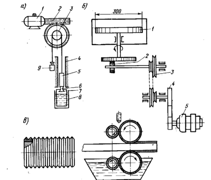 а - погружением; б - центрифугированием; в - накатыванием ребристым роликом