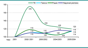 Рекламное пространство на основном медианосителе – телевидении – ограничено; спрос на ТВ-рекламу опережает предложение, что неизбежно ведет к повышению расценок на рекламу.