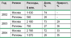 Табл. 5. Территориальная структура рынка рекламы в 2002-2004 гг.