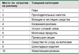 Табл. 8. Топ 10 товарных категорий – крупнейших рекламодателей по итогам 2004 года