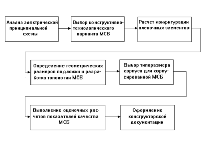 Разработка и проектирование МСБ, как правило, должны быть связаны с проектированием системы в целом. Основная особенность разработки МСБ заключается в: одновременном решении комплекса задач, связанных со структурой системы; оптимизации топологии с целью увеличения степени интеграции, уменьшении длины межэлементных соединений, сокращения числа пересечений проводников; отработке базовой технологии для производства набора МСБ. Последовательность полного цикла разработки микросборки представлена на рис.1.1