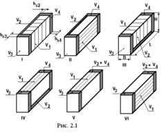 Таким образом, внутренний объём блока Vбл=V1+V2+V3+V4. Объём V1 определяется объёмом ФЯ, их количеством - nфя и шагом установки ФЯ в блоке Hя :V1 =Vфя·nфя ; Vфя=hп· bп· Ня . Здесь bп - размер ФЯ по оси Х с учётом конструкции элементов крепления в блоке; hп - размер ФЯ по оси Y.