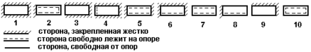 | Схема закрепления | Отношение сторон a и b пластины | |||||||