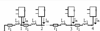 Шины питания и общего провода могут стать причиной передачи помех, если сопротивление и индуктивность их будут недостаточно малы. В наихудшем случае, когда все микросхемы подключены к общему проводу «по цепочке», величина статической помехи определяется падением напряжения на сопротивлении r при протекании суммарного тока потребления n микросхем (рис.4.18):