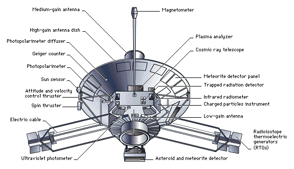 The Pioneer series of U.S. space probes was equipped with cameras and instruments to detect subatomic particles, meteorites, and electric and magnetic fields in the solar system and interstellar space.