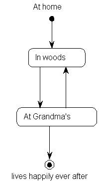 Let us look at the state diagram for Red Riding Hood. One might be: