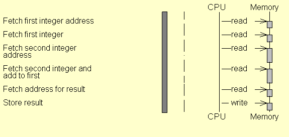 Let us now look at an event trace for an instruction to add two integers (stored in memory) and to put the result back into memory.