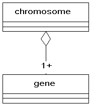 Let us now consider another example, this time from the realm of evolutionary computing. A genetic algorithm uses simulations of genes to solve problems. To begin with, we have the idea of a chromosome which is made up of one or more genes. The more genes you have, the more complicated the problem you can try to solve.