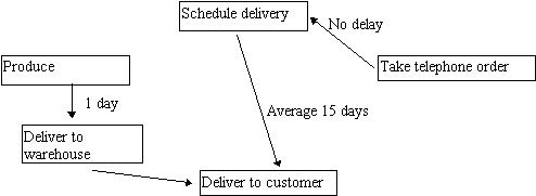 Customers would typically order about 15 days in advance of delivery, to fit in with their own production schedules. Orders were taken, irrespective of stock levels in the warehouse. Production would then schedule its activities to maintain stock levels in the warehouse. The new system added an information flow that allowed the production activity to see the orders. This meant that production could respond to changes in order levels rather than changes in stock levels. The result was that stocks could be reduced.
