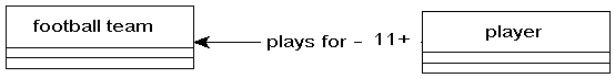 A player plays for one football team. There are at least 11 players for a given football team. Football teams do not play for players.