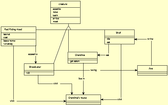 Here is a simple model for the Red Riding Hood story