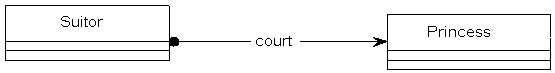 Zero or more suitors court the Princes. The black dot at the end of the line indicates zero or more.