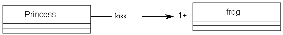 In a one-to-one relationship, one object is associated with exactly one of its related objects. This is modelled by a straight line drawn between the objects. If the relationship is one-way, then an arrow is used to indicate the direction. The line can be labelled.