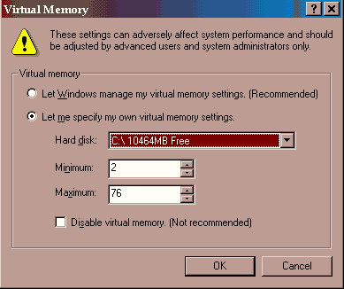 The amount of hard drive space you allocate for virtual memory is important. If you allocate too little, you will get "Out of Memory" errors. If you find that you need to keep increasing the size of the virtual memory, you probably are also finding that your system is sluggish and accesses the hard drive constantly. In that case, you should consider buying more RAM to keep the ratio between RAM and virtual memory about 2:1. Some applications enjoy having lots of virtual memory space but do not access it very much. In that case, large paging files work well.
