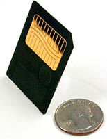 SmartMedia cards erase, write and read memory in small blocks (256- or 512-byte increments). This approach means that they are capable of fast, reliable performance while allowing you to specify which data you wish to keep. They are small, lightweight and easy to use. They are less rugged than other forms of removable solid-state storage, so you should be very careful when handling and storing them.
