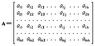 may be abbreviated to A = [aij], in which the ranges i = 1, 2, ..., m and j = 1, 2, ..., n should be explicitly given if they are not implied by the text. If m = n, the matrix is square, and the number of rows (or columns) is the order of the matrix. Two matrices, A = [aij] and B = [bij], are equal if and only if they are of the same size and if, for every i and j, aij = bij. The elements a11, a22, a33, ... constitute the main or principal diagonal of the matrix A = [aij], if it is square. The transpose AT of a matrix A is the matrix in which the ith row is the ith column of A and in which the jth column is the jth row of A; thus, from the matrix M3, above,