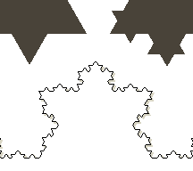 A Koch snowflake is constructed by making progressive additions to a simple triangle. The additions are made by dividing the equilateral triangle’s sides into thirds, then creating a new triangle on each middle third. Thus, each frame shows more complexity, but every new triangle in the design looks exactly like the initial one. This reflection of the larger design in its smaller details is characteristic of all fractals.