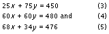 The cutting, assembly, and finishing data determine the following inequalities and equalities: