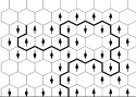 Fig. 1. Ising model on the honeycomb lattice, with loops corresponding to a term in the expansion of (1). Alternatively, these may be thought of as domain walls of an Ising model on the dual triangular lattice.