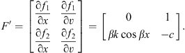 Eq. (10) in matrix form, with f1 and f2 as function of x′ and v′ respectively is: