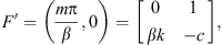 Hence, these points are (mπ/β, 0), where m is an integer. To find the local behavior of the solutions to Eq. (11) near the fixed points, the derivative of F, F′, is computed at these fixed points: