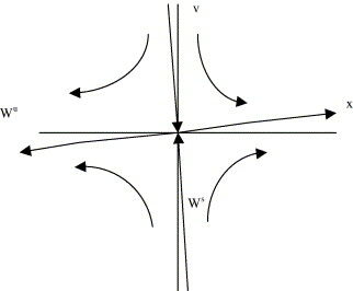 It is concluded that the fixed points of the form (2lπ/β, 0) are all saddle points having local phase plane behavior as shown in Fig. 3, where l is any integer