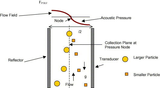 In this research fractionation of particles is based on density and compressibility differences of fluid and particles rather than on particle size. Employing the above basic principles of physics of particles in an acoustic field, a mathematical model is developed to calculate trajectories of deflected particles subjected to acoustic standing waves. Table 1 gives the properties of the particles and the fluid that are used in this research.