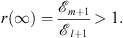 to −∞ at x = xl + 1−; r (x) then switches to +∞ at x = xl + 1+, and continues to decrease as x increases from xl + 1+. At x = ∞, r (x) becomes