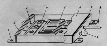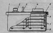 3 — брокеритовая вставка (шайба); 4 — фольговая перемычка; 5 —конденсатор;