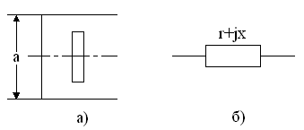 Рис.12.Поперечная щель (а) и ее эквивалентная схема (б).