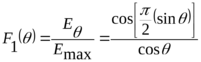 где E— поле в рассматриваемом направлении;Emax— поле в направлении максимального излучения (=0°);—угол, отсчитываемый от нормали к вибратору.