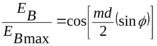 где — угол в вертикальной плоскости, отсчитываемый от нормали к щели; ЕВ— поле в рассматриваемом направлении; EВmax—поле в направлении максимального излучения (=0).