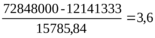 Пвал = (72848 000 – 72848 000/6) – 43866 000 = 16840 700 руб.
