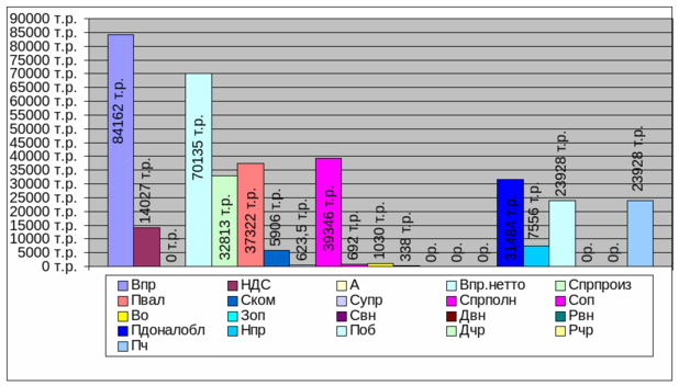 оля прибыли остающейся в распоряжении предприятия: Предприятие по плану должно получить выручку от реализации продукции в количестве 84'162 тыс. руб. В выручку входит: 14'027 тыс. руб. - налог на добавленную стоимость; 39'345,838 тыс. руб. – полная себестоимость изготовленной продукции по плану, в которой 5'906,334 тыс. руб. коммерческих расходов, 623,504 тыс. руб. управленческих расходов, расходов на само производство продукции 32'813 тыс. руб.; акцизных сборов нет, так как товар не входит в список товаров с которых берутся акцизные сборы. Таким образом, в плановой выручке 37'322 тыс. руб. валовой прибыли, что составляет приблизительно 44,35% от плановой выручки. Прибыль от продаж составляет 30'792,152 тыс. руб., что соответствует приблизительно 36,59% от плановой выручки от продаж продукции. Сальдо операционных доходов и расходов составит в плановом году 692 тыс. руб., операционные доходы составят – 1'030 тыс. руб., операционные расходы – 338 тыс. руб. Сальдо вне реализационной деятельности равно нулю, то есть нет доходов и расходов связанных с вне реализационной деятельностью. Тогда прибыль до налогообложения составит 31'484,152 тыс. руб. Налог на прибыль предприятия в плановом году будет 7'556,196'48 тыс. руб. Чрезвычайных доходов и расходов нет. Прибыль от обычной деятельности будет равна чистой прибыли предприятия – 23'927,955'52 тыс. руб.