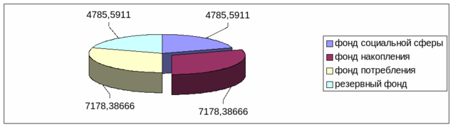 20% от чистой прибыли идет на содержание объектов соцкультбыта т.е. 4'785,591'10 тыс. руб. перечисляется на счет; 20% от чистой прибыли направляется на производственное и социальное развитие предприятия, т.е. 7'178,386'66 тыс. руб. перечисляется на счет фонда накопления; 30% чистой прибыли перечисляется в фонд потребления, т. е. 7'178,386'66 тыс. руб. направляется на потребление и не относящиеся на себестоимость; 20% от чистой прибыли т.е. 4'785,591'10 тыс. руб. предприятия перечисляется в резервный фонд