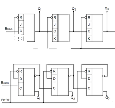 хема счетчика на D-триггерах: