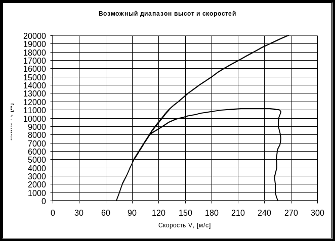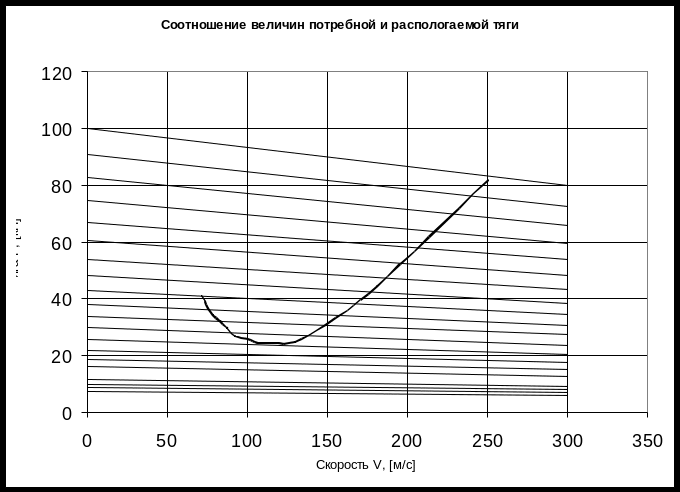 = 72 м/с для данной массы самолета и условий полета ограничивают возможный диапазон высот и скоростей горизонтального установившегося полета.