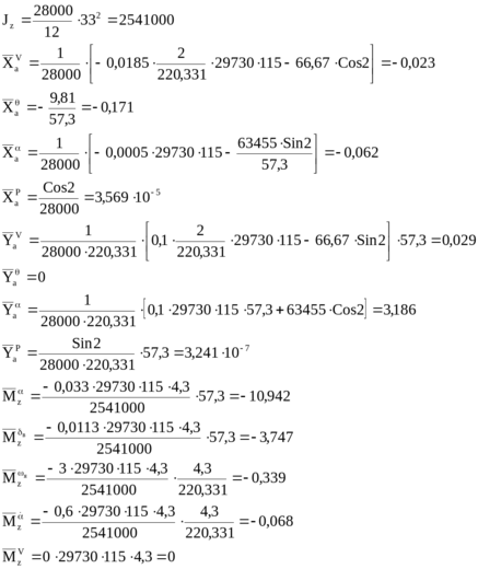 Подставляя все известные нам данные в перечисленные выше формулы получим численное значение динамических коэффициентов.