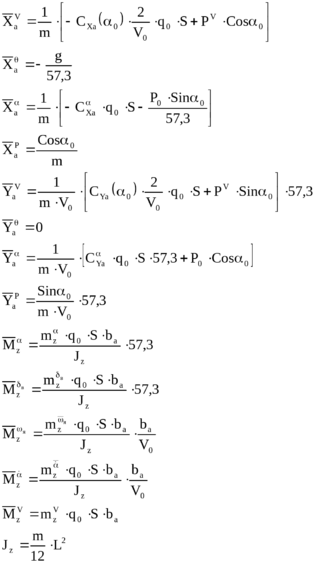 Из линеаризованной системы уравнений продольного движения найдем динамические коэффициенты по соответствующим формулам