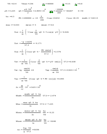 Найдем, что скорости V0 соответствует тяга Р0 = ~110 кН, 0 = ~3 . По графику зависимости СХа() найдем, что СХа(0) = 0,032, соответственно СYa(0) = 0,19. По формулам и получим значения и .