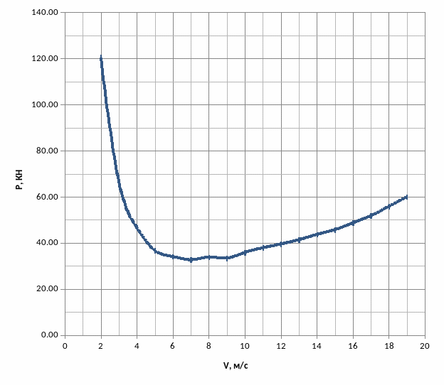 Значения Рр приведены в таблице ниже. По найденным значениям построим график располагаемой тяги и найдем точки пересечения данного графика с графиком потребной тяги при  = 0.