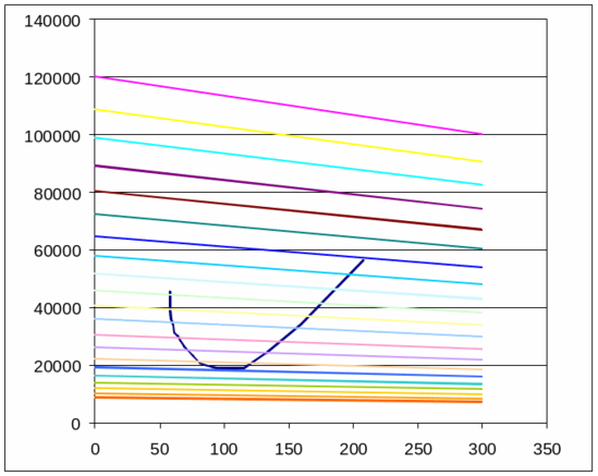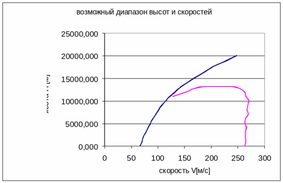 Возможный диапазон высот и скоростей горизонтального установившегося полета строится с помощью метода тяг Н.Е. Жуковского. Данный метод основан на сравнении величин потребной и располагаемой тяг.